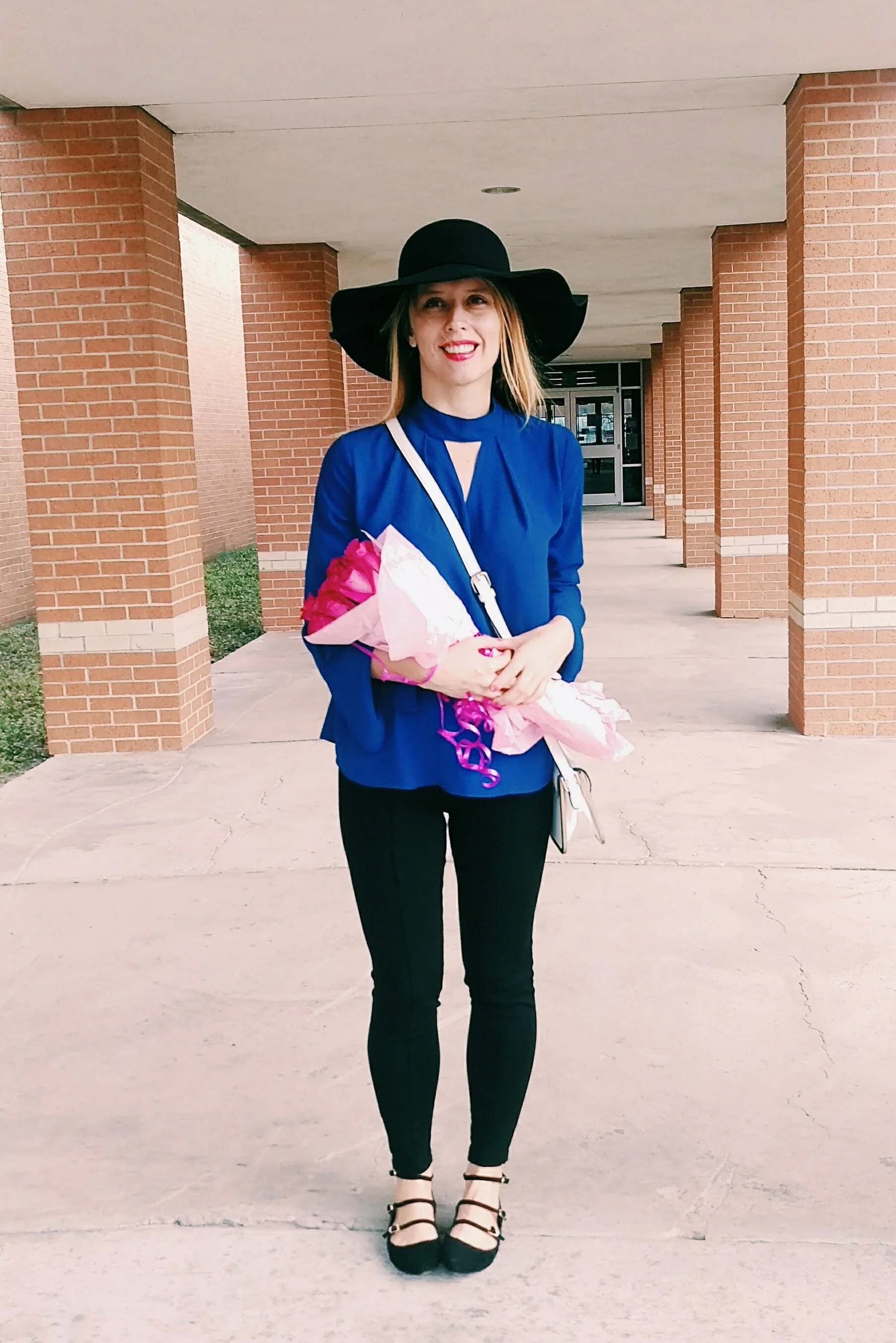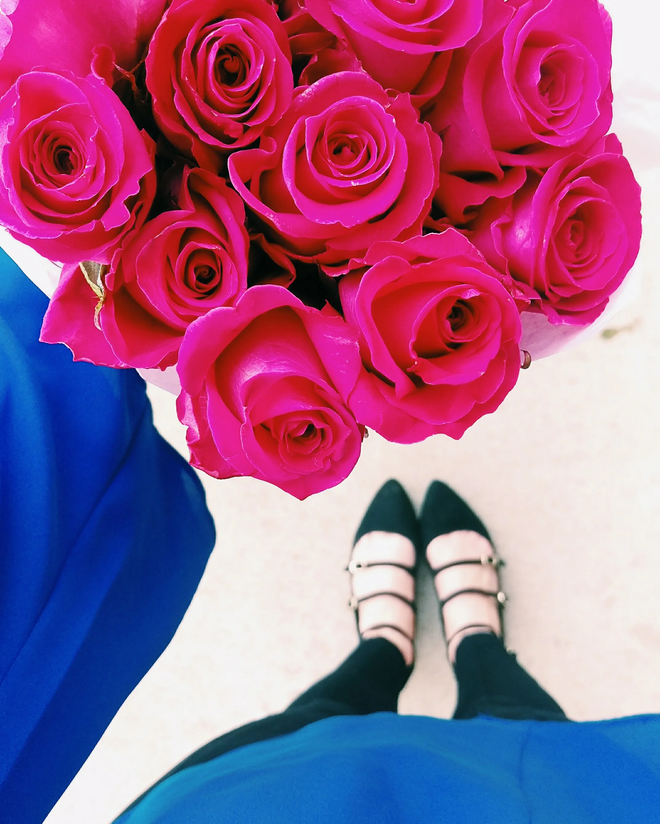 Ever since I was younger, I've gravitated to shades of pink and shades of blue. This color is one of my favorite ones (seen here, here and here). It reminds me of the deep shade of the Mediterranean Sea. I paired it with a black felt hat and triple strap mary janes. A swipe of bold pink lipstick added a colorful pop to the whole look. The trick is to find a shade with cooler tones to play off the coolness of cobalt blue.